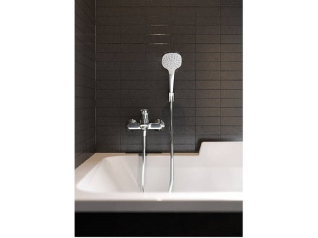 Páková vaňová vodovodná batéria, určená k nástennej montáži. S prepínačom vaňa/sprcha s automatickým resetovaním.