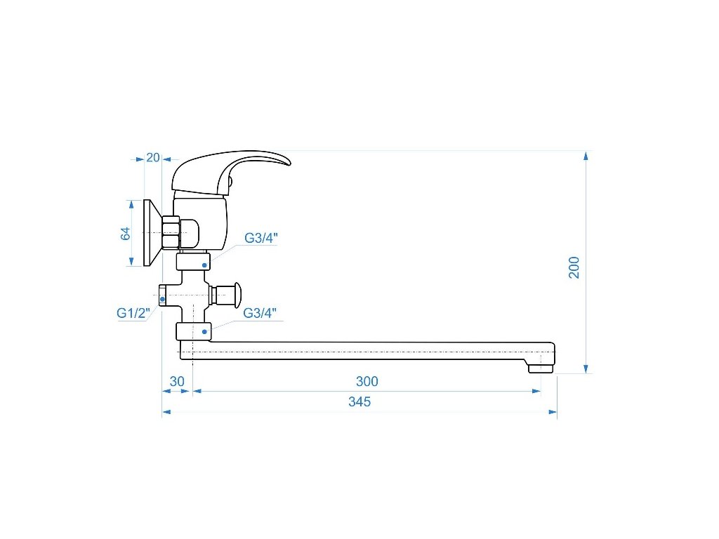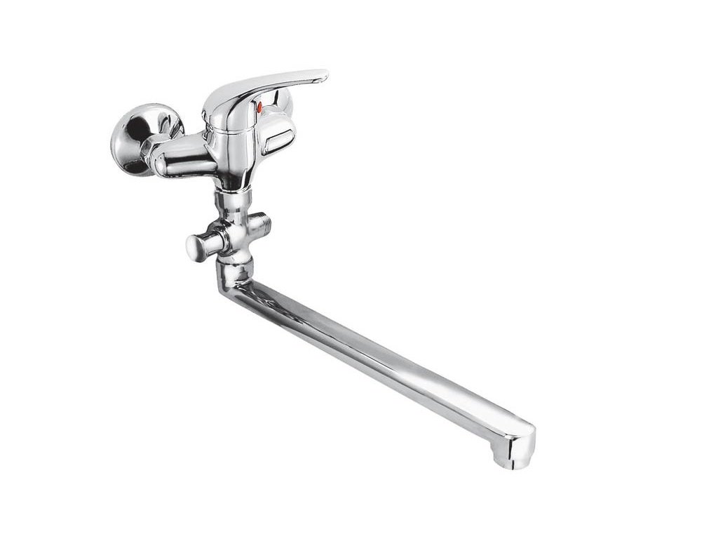 Páková vaňová stenová vodovodná batéria do bytového jadra s rovným liatym 30cm výtokovým ramenom, bez príslušenstva.