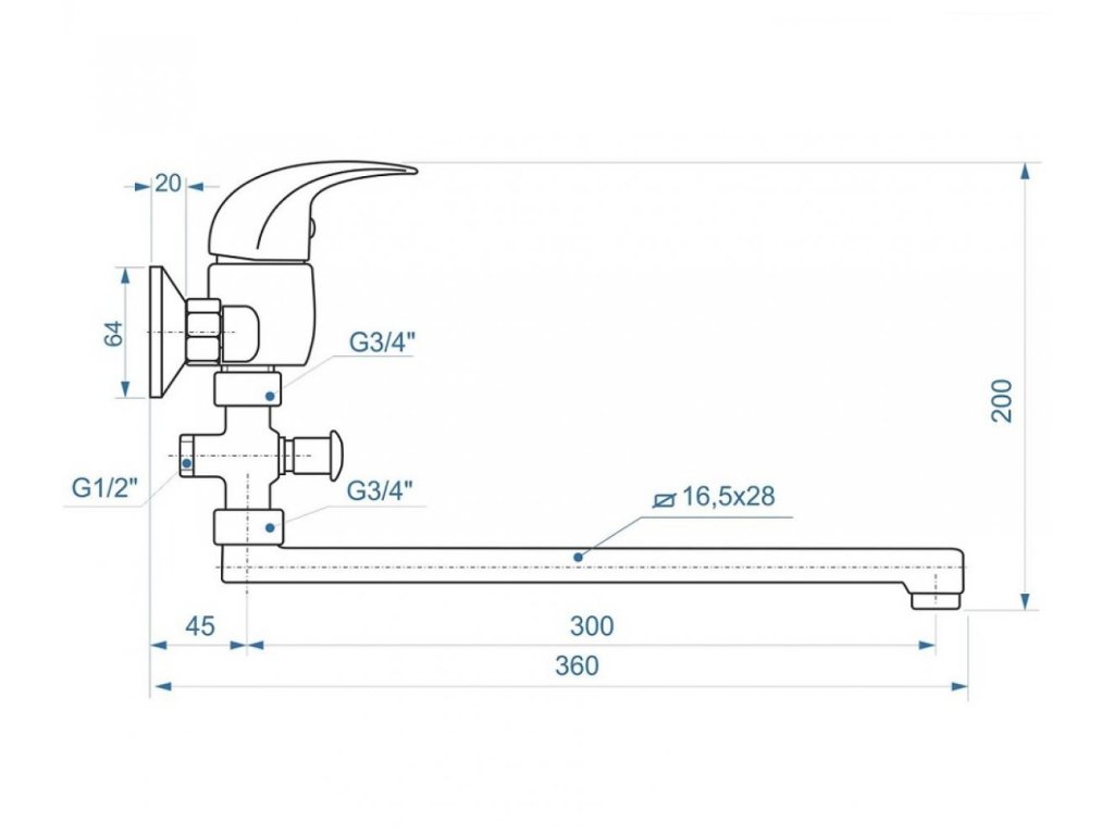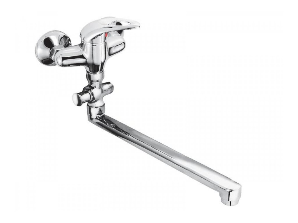 Páková vaňová stenová vodovodná batéria do bytového jadra s rovným liatym 30cm výtokovým ramenom, bez príslušenstva.