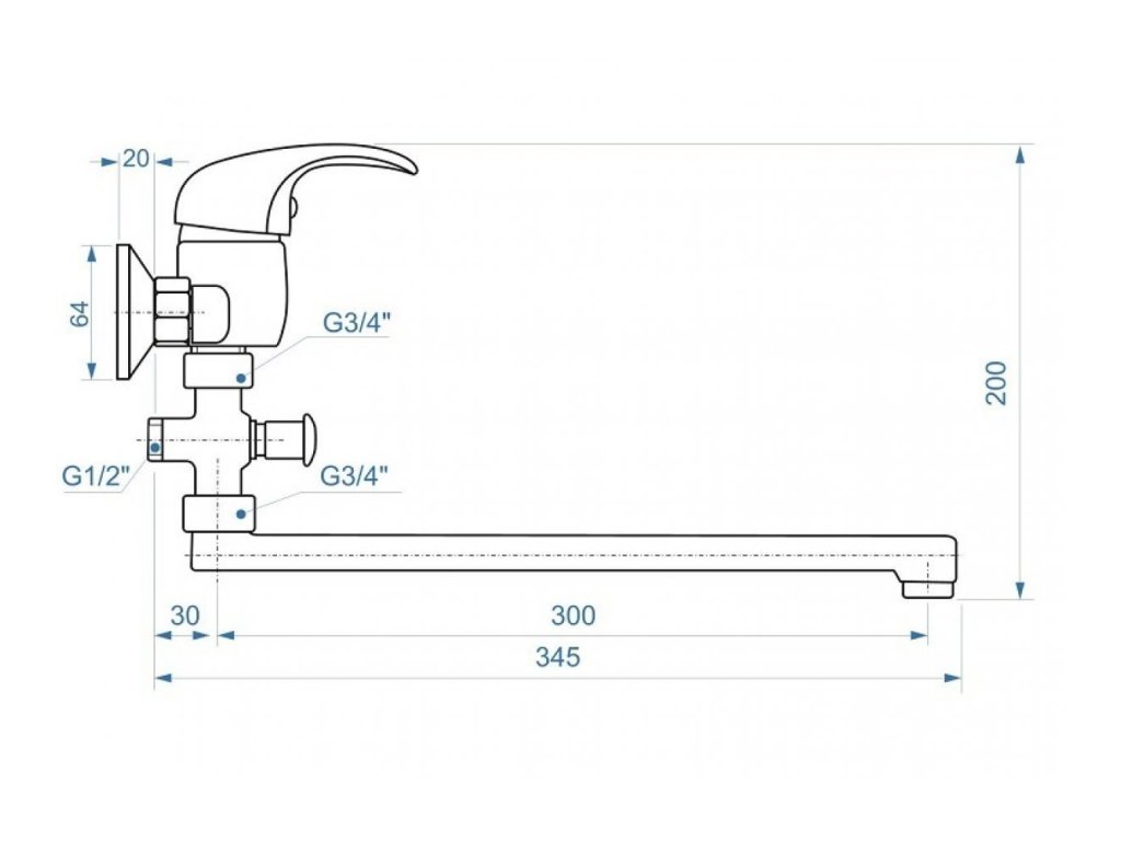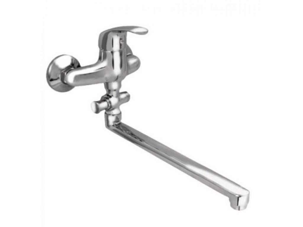 Páková vaňová stenová vodovodná batéria do bytového jadra s rovným liatym 30cm výtokovým ramenom, bez príslušenstva.Rozstup batérie je 150mm.