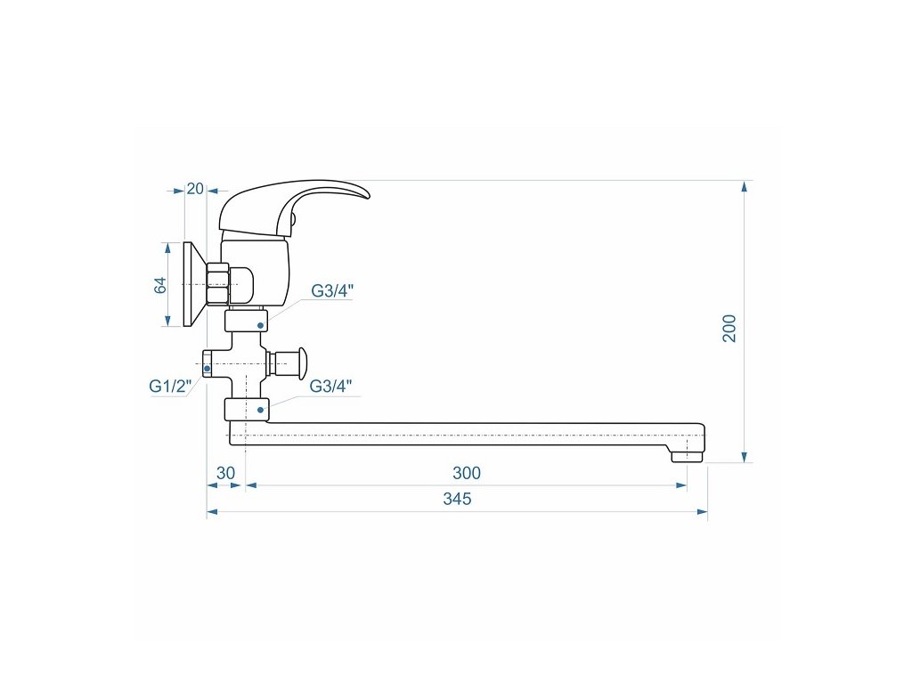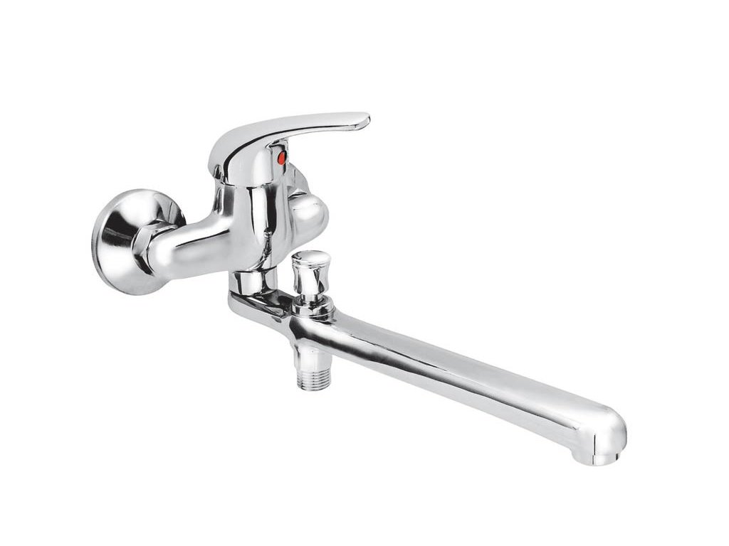 Páková vaňová stenová vodovodná batéria do bytového jadra s rovným liatym 30cm výtokovým ramenom s integrovaným prepínačom, bez príslušenstva.