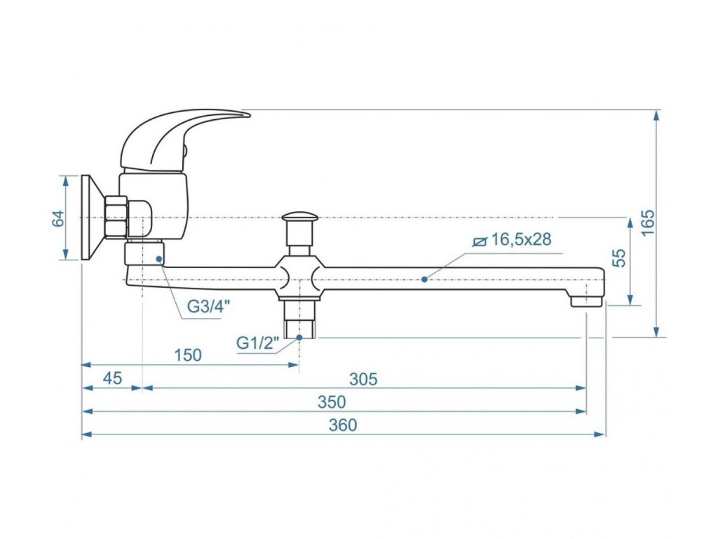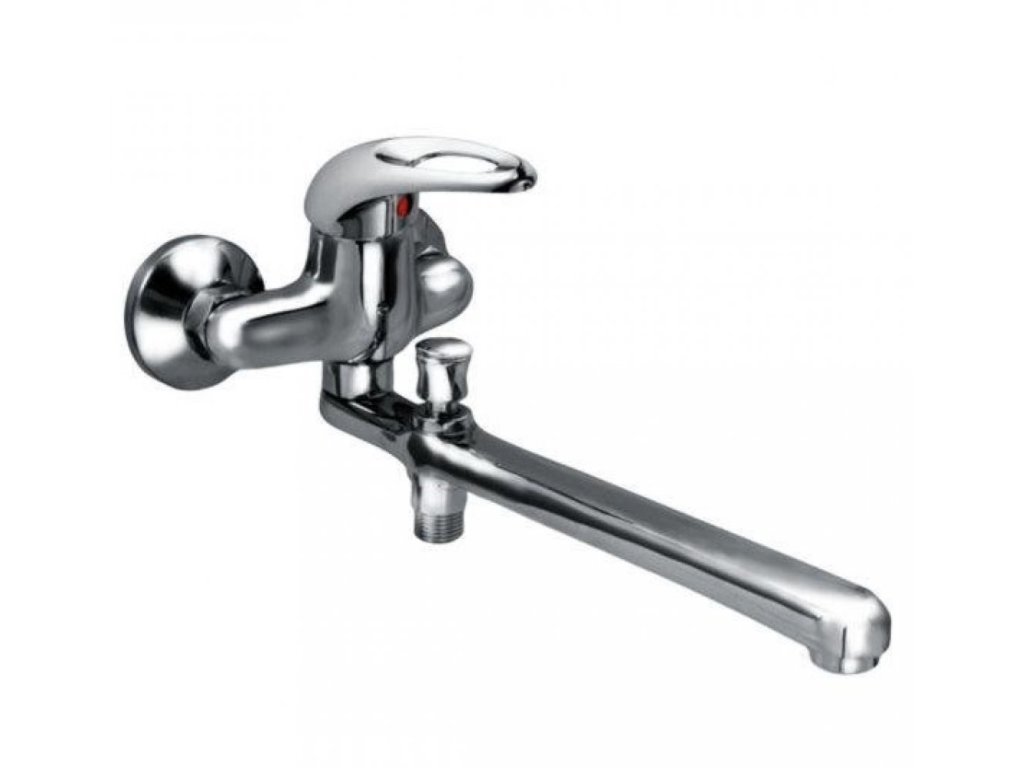 Páková vaňová stenová vodovodná batéria do bytového jadra s rovným liatym 30cm výtokovým ramenom s integrovaným prepínačom, bez príslušenstva.