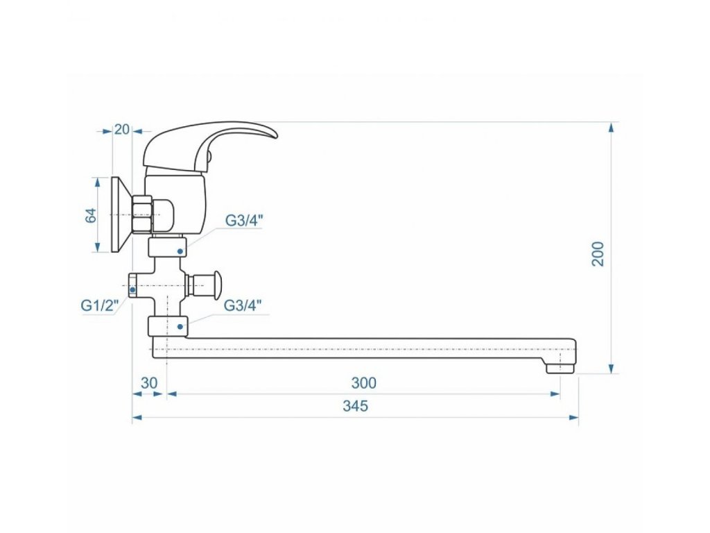 Páková vaňová stenová vodovodná batéria do bytového jadra s rovným liatym 30cm výtokovým ramenom s integrovaným prepínačom, bez príslušenstva.Rozstup batérie je 100mm.
