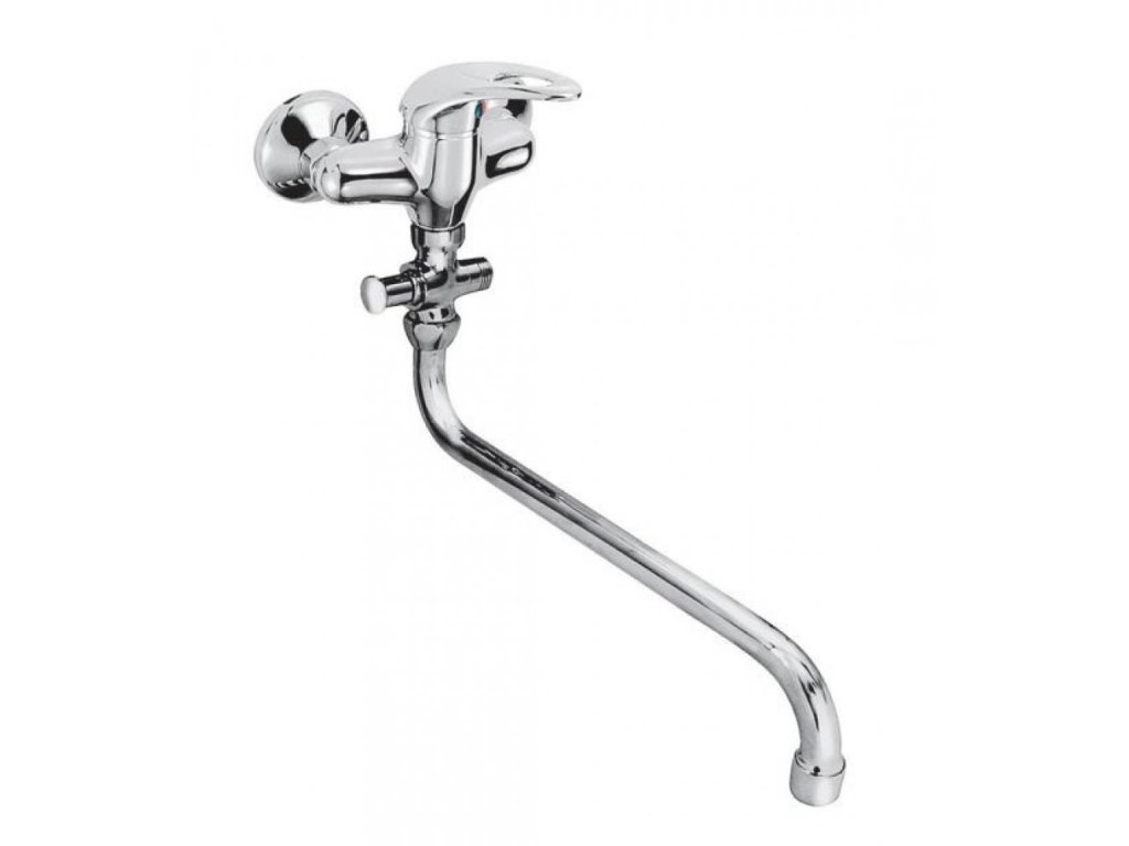 Páková vaňová stenová vodovodná batéria do bytového jadra s trubkovým 30cm výtokovým ramenom, bez príslušenstva.