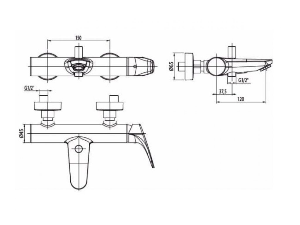 Páková vaňová stenová vodovodná batéria s príslušenstvom: so sprchovou hadicou, ručnou sprchou a držiakom ručnej sprchy. Súčasťou balenia sú etážky aj krycie ružice. Prepínač režimu vaňa/sprcha nie je aretovateľný.