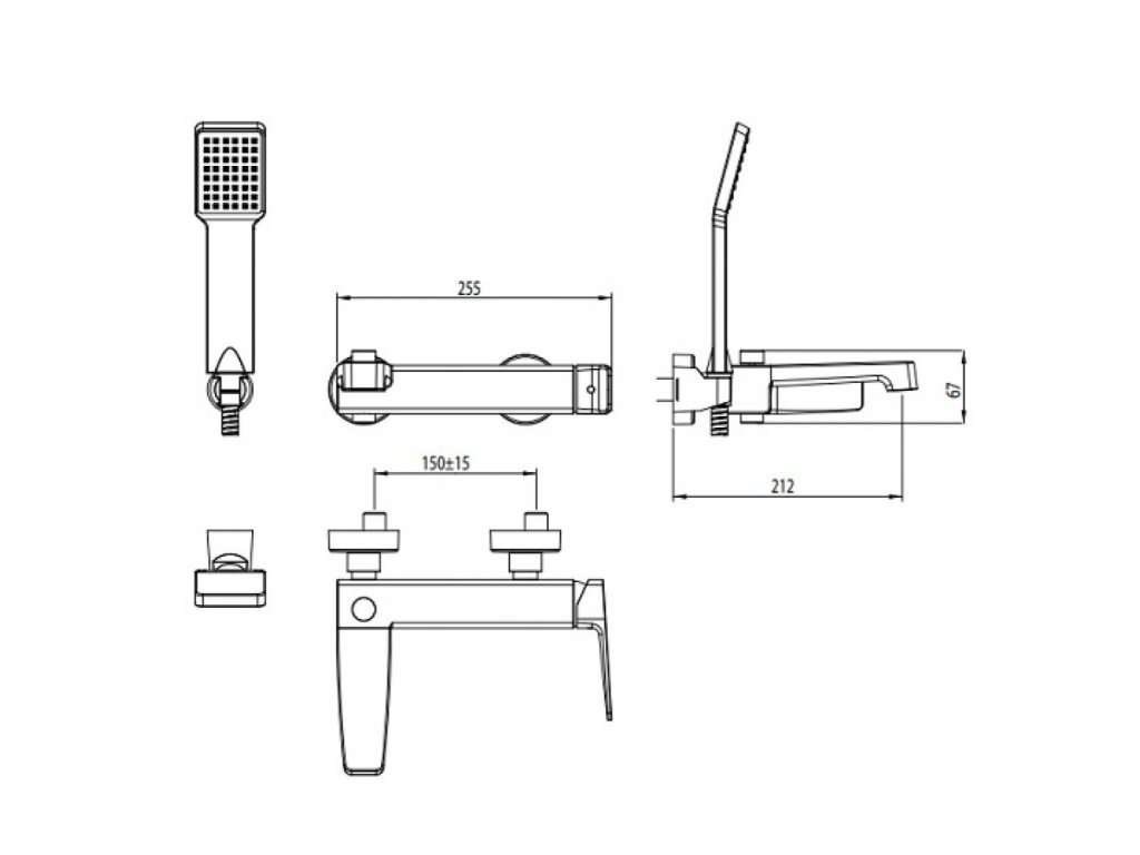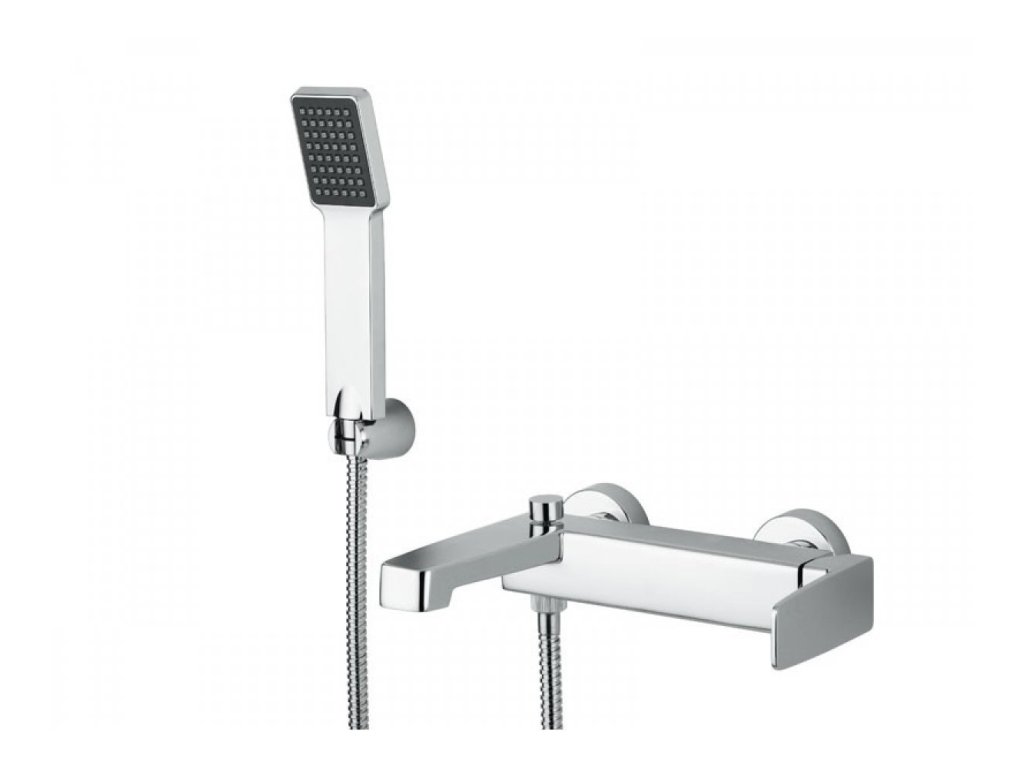 Páková vaňová stenová vodovodná batéria s príslušenstvom: so sprchovou hadicou, ručnou sprchou a držiakom ručnej sprchy. Súčasťou balenia sú etážky aj krycie ružice. Prepínač režimu vaňa/sprcha je aretovateľný.