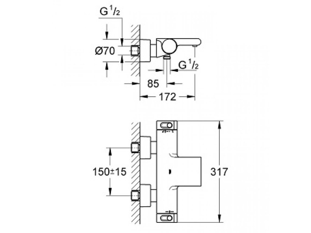 Vaňová batéria termostatická nástenná GROHTHERM 2000, chróm