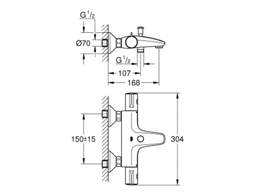 Vaňová batéria termostatická nástenná GROHTHERM 800, chróm