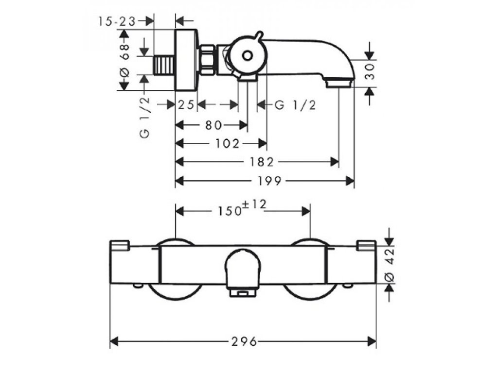 Vaňová stenová termostatická vodovodná batéria pre dve odberné miesta.