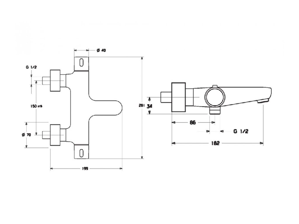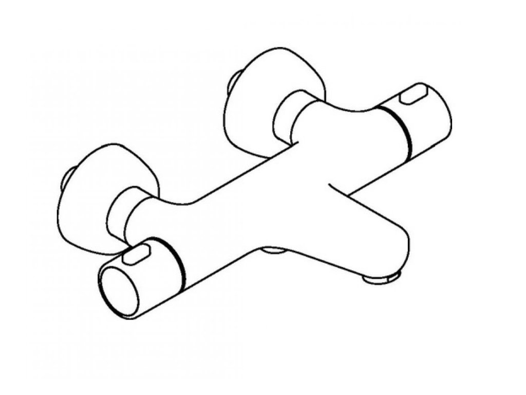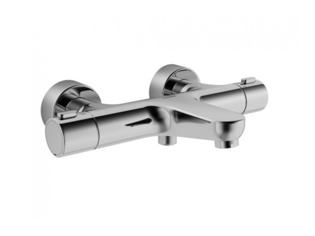 HANSAPRISMA - vaňová nástenná termostatická vodovodná batéria, s pevným výtokovým ramenom zakončenám CASCADE® - aerátorom. S otočným prepínačom, integrovaným prepínačom ovládania prietoku vody v páke. Ovládaná je pomocou rukoväte pre reguláciou prietoku vody a rukoväte pre reguláciu teplotu vody.