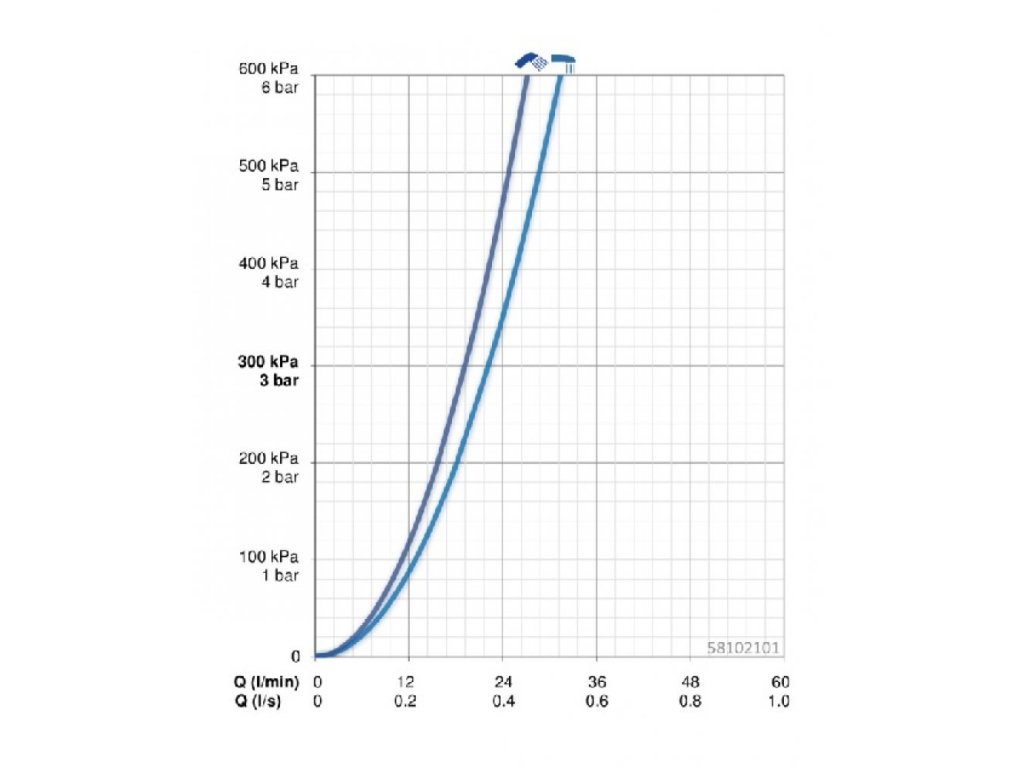 Prietok meraný pri hydraulickom tlaku 3 bar: 22,2l/19,2l/min.
