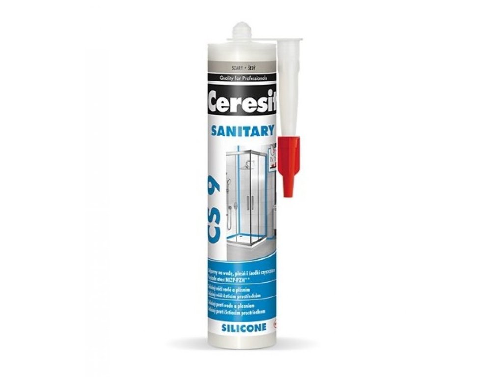 Ceresit Sanitárny silikón CS9 je jednozložkový silikónový tesniaci tmel na vyplnenie dilatačných škár medzi obkladmi a dlažbami v interiéri i exteriéri. Je vodeodolný, vhodný na miesta so zvýšenou vlhkosťou (kúpeľne, kuchyne a pod.). Silikón má dobrú priľnavosť ku sklu, keramickým obkladom, glazovaným povrchom, eloxovanému hliníku a to bez nutnosti penetrácie. Vytvrdený tmel je odolný proti bežným čistiacim prostriedkom a mnohých chemikáliám a má výbornú dlhodobú ochranu proti prírodným vplyvom (UV žiareniu, dážďu, ozónu, soli a pod.).