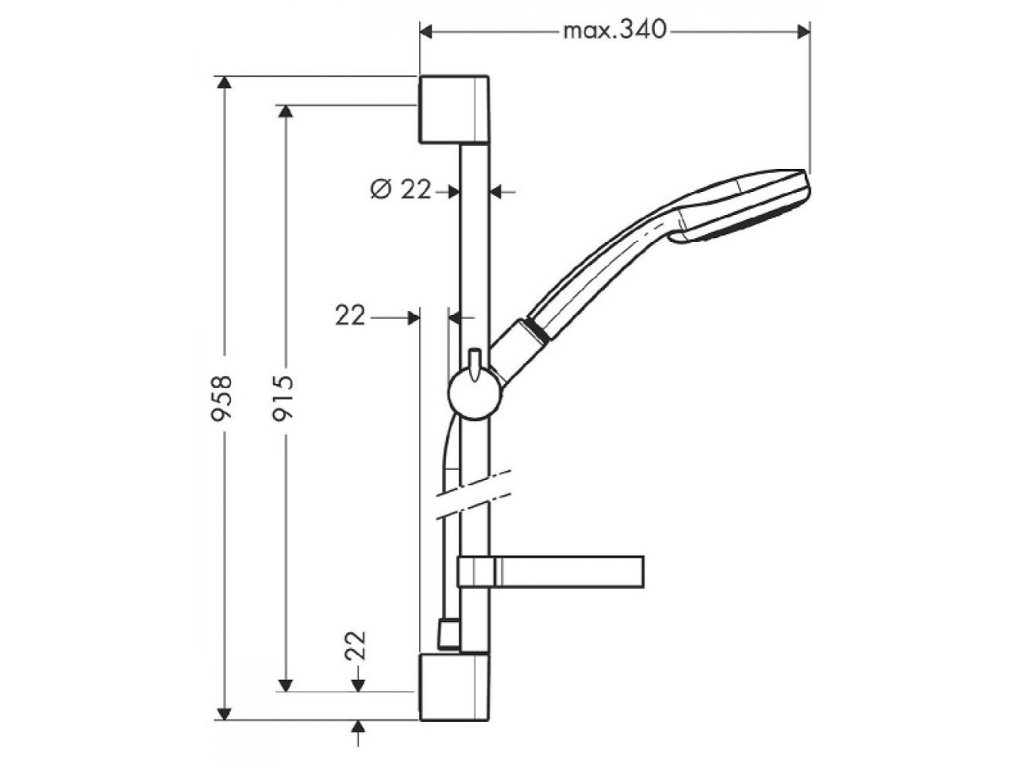 • sprchová tyč, dĺžka 900 mm, priemer tyče 22 mm.