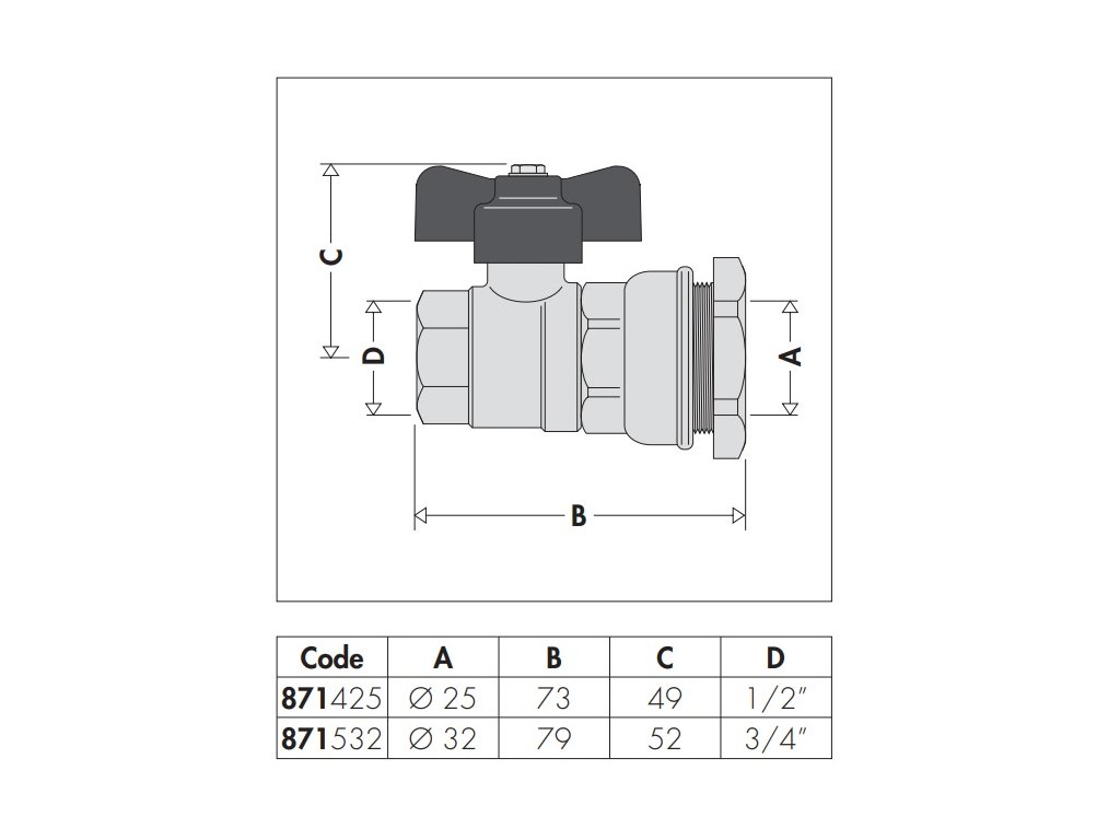 Mosadzné šróbenie DECA s guľovým ventilom, pre PE rúry - d25mm x 3/4"F