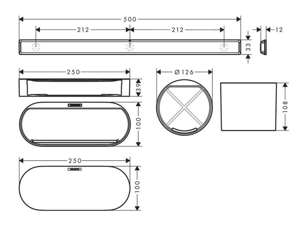 • nástenná lišta - dĺžka 500 mm