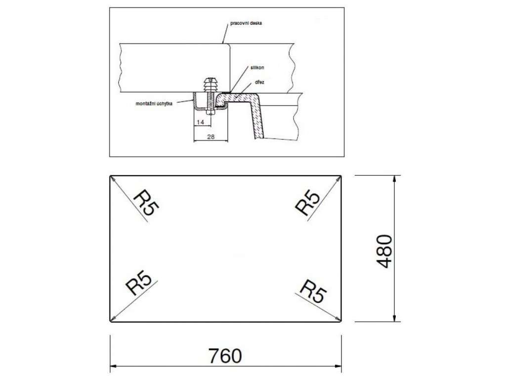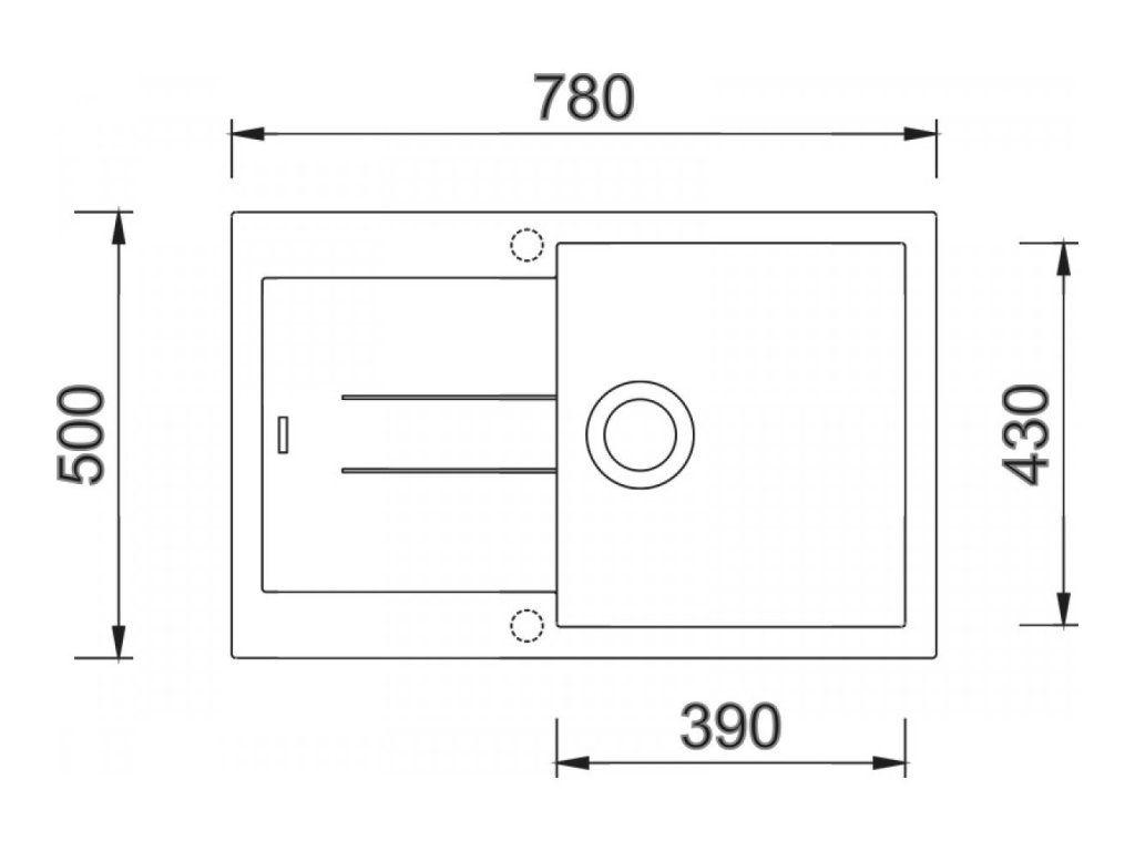 Vonkajšie rozmery drezu sú: 780 x 500 mm