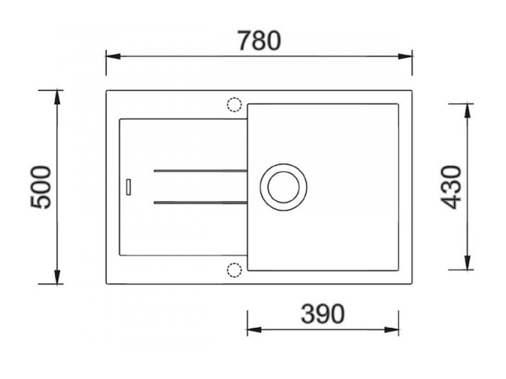 Vonkajšie rozmery drezu sú: 780 x 500 mm
