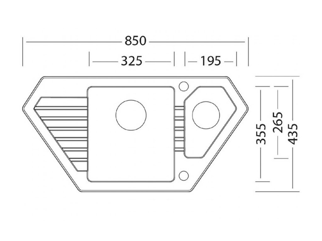 Vonkajšie rozmery drezu: 850 x 435 mm