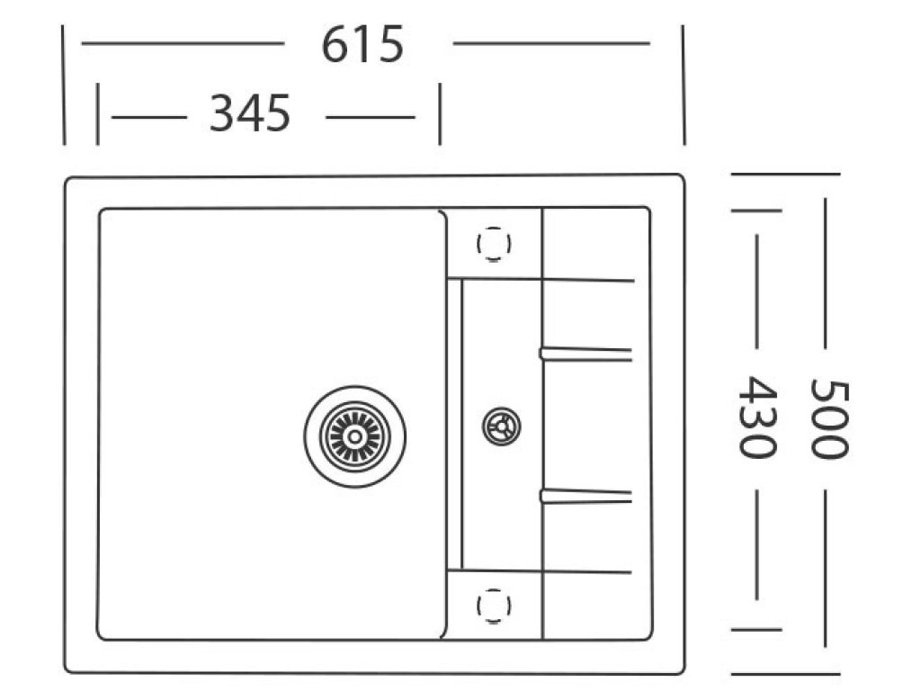 Vonkajšie rozmery drezu sú: 615 x 500 mm