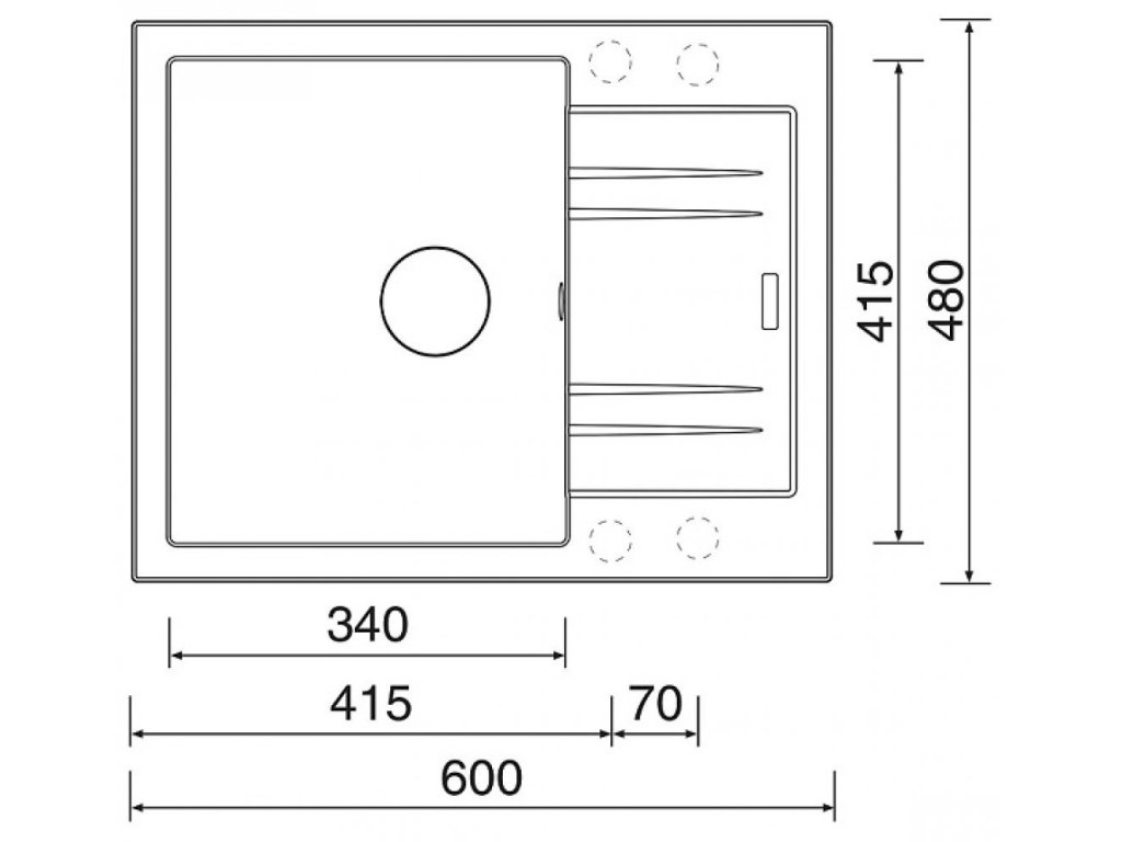 Vonkajšie rozmery drezu: 600 x 480 mm
