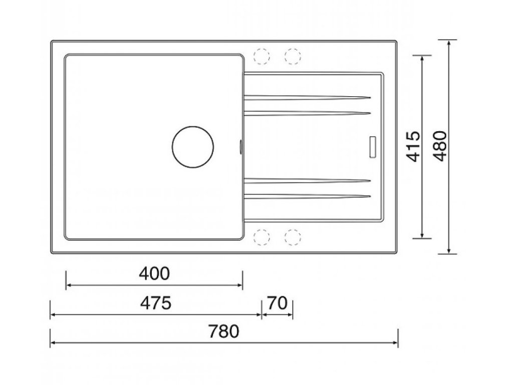 Vonkajšie rozmery drezu: 780 x 480 mm