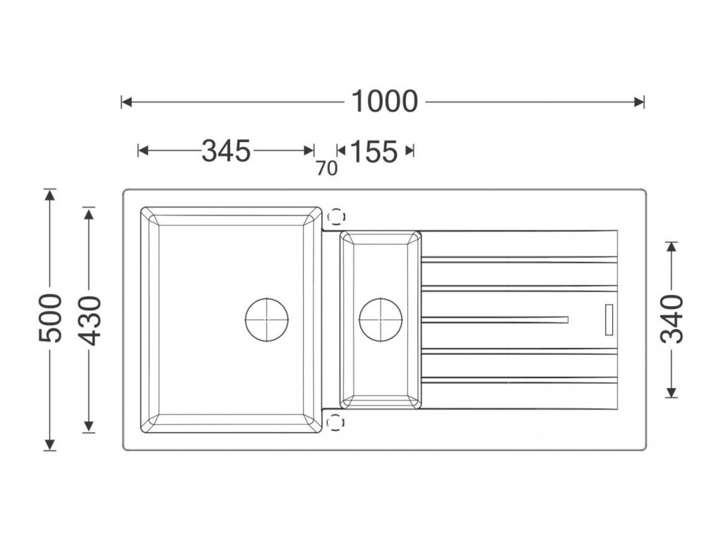 Vonkajšie rozmery drezu sú: 1000 x 500 mm