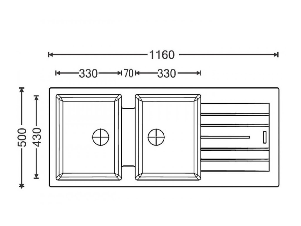 Vonkajšie rozmery drezu: 1160 x 500 mm