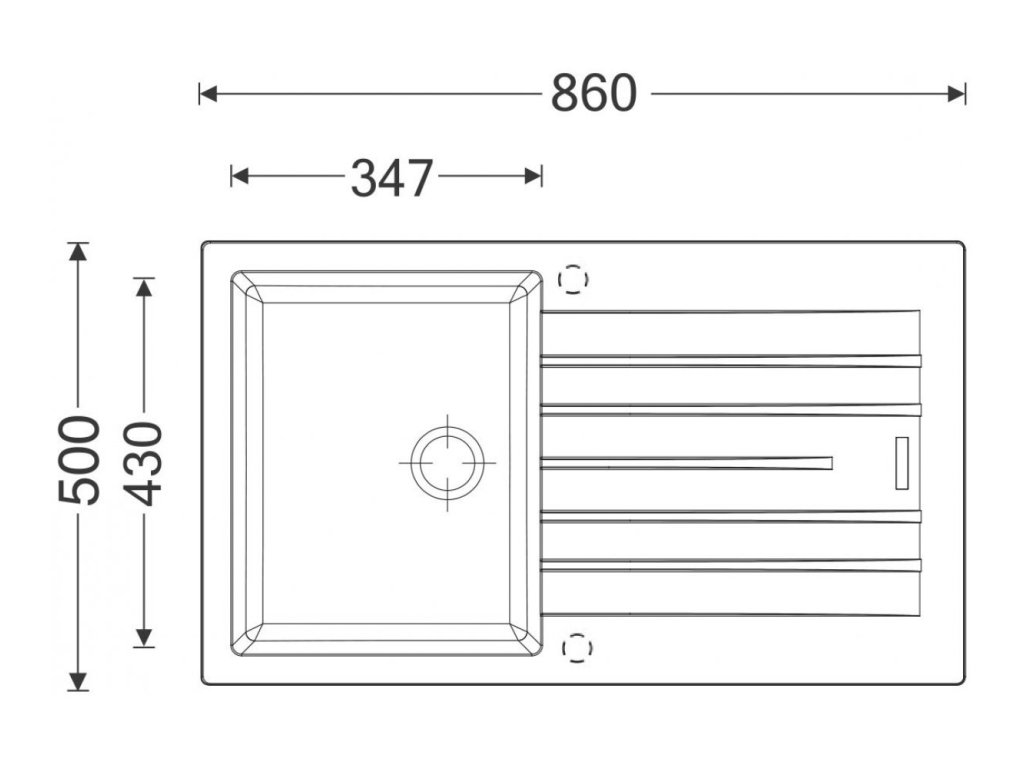 Vonkajšie rozmery drezu sú: 860 x 500 mm.