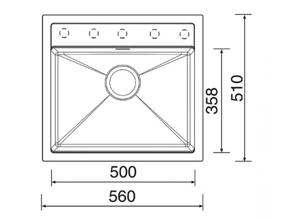 Vonkajšie rozmery drezu sú: 560 x 510 mm.