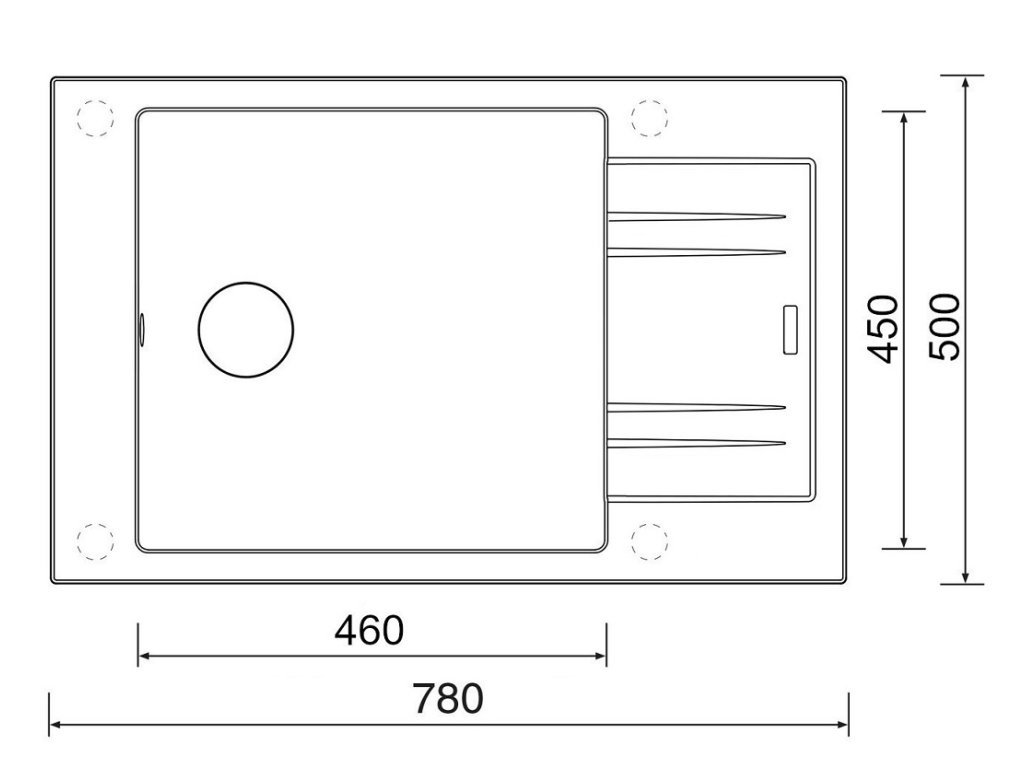 Vonkajšie rozmery drezu: 780 x 480 mm