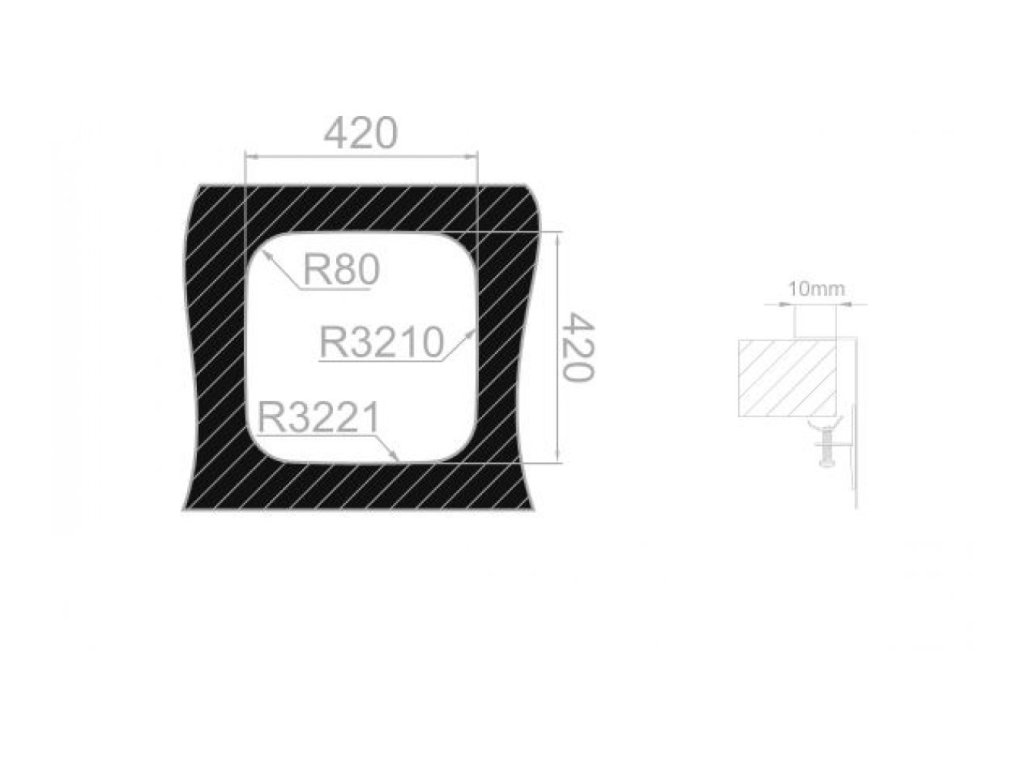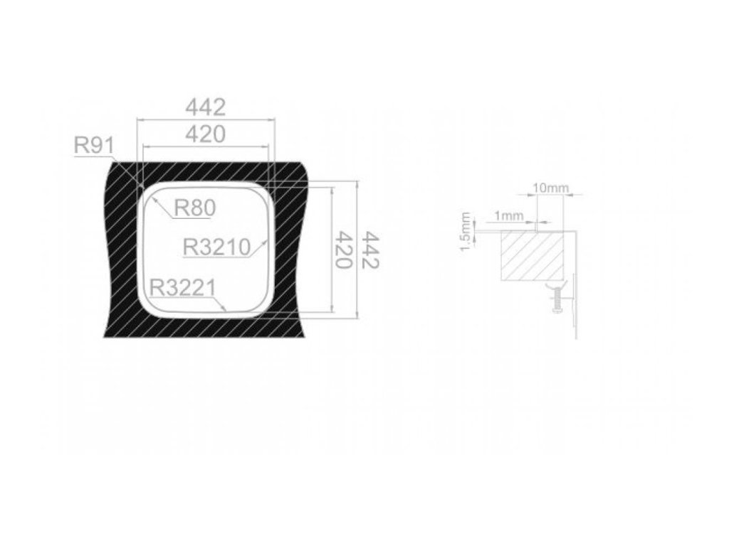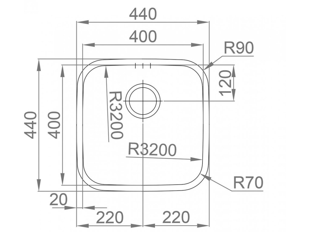 Vonkajšie rozmery drezu sú: 440 x 440 mm