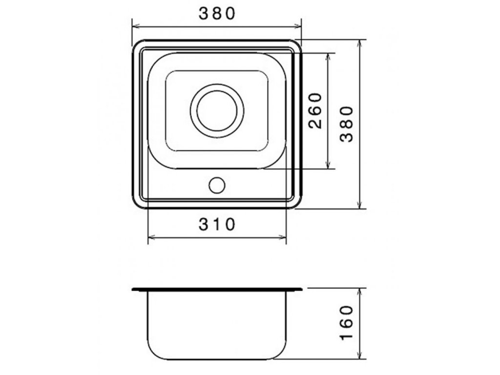 Vonkajšie rozmery drezu: 380 x 380 mm