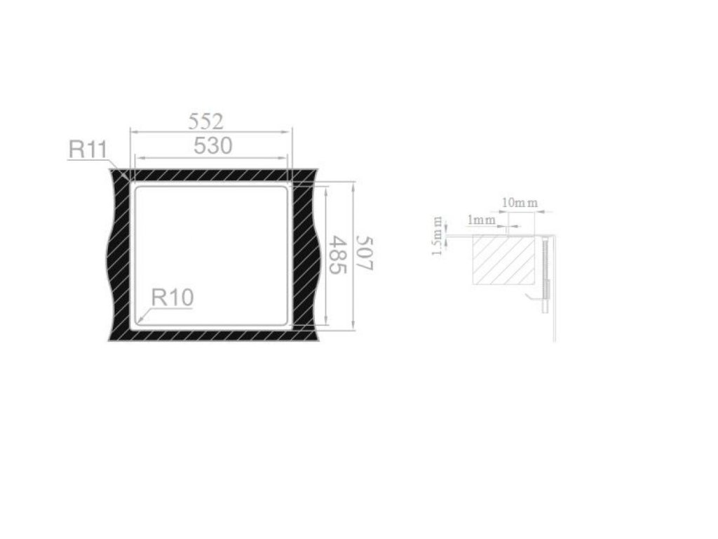 Vonkajšie rozmery drezu sú: 550 x 505 mm