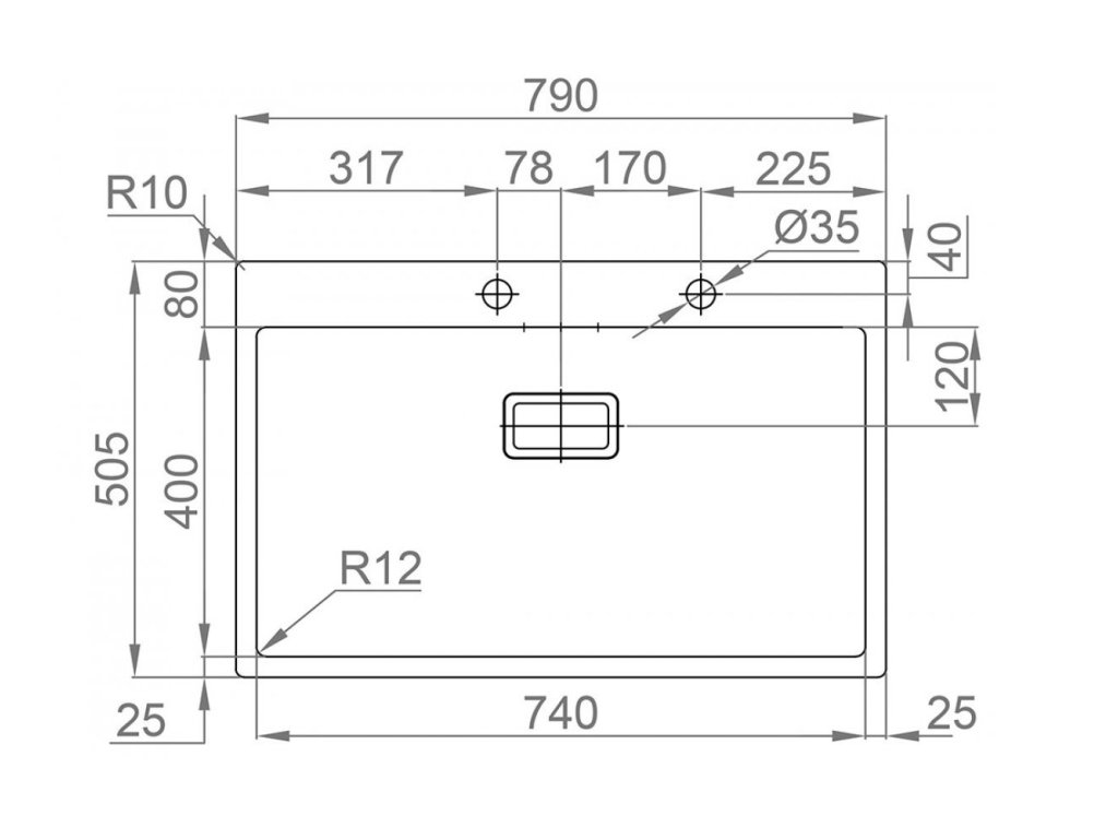 Vonkajšie rozmery drezu sú: 790 x 505 mm