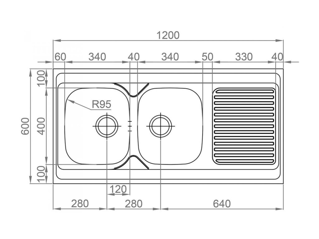 Vonkajšie rozmery drezu sú: 1200 x 600 mm
