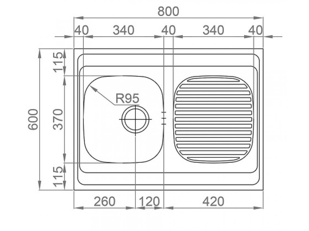 Vonkajšie rozmery drezu sú: 800 x 600 mm