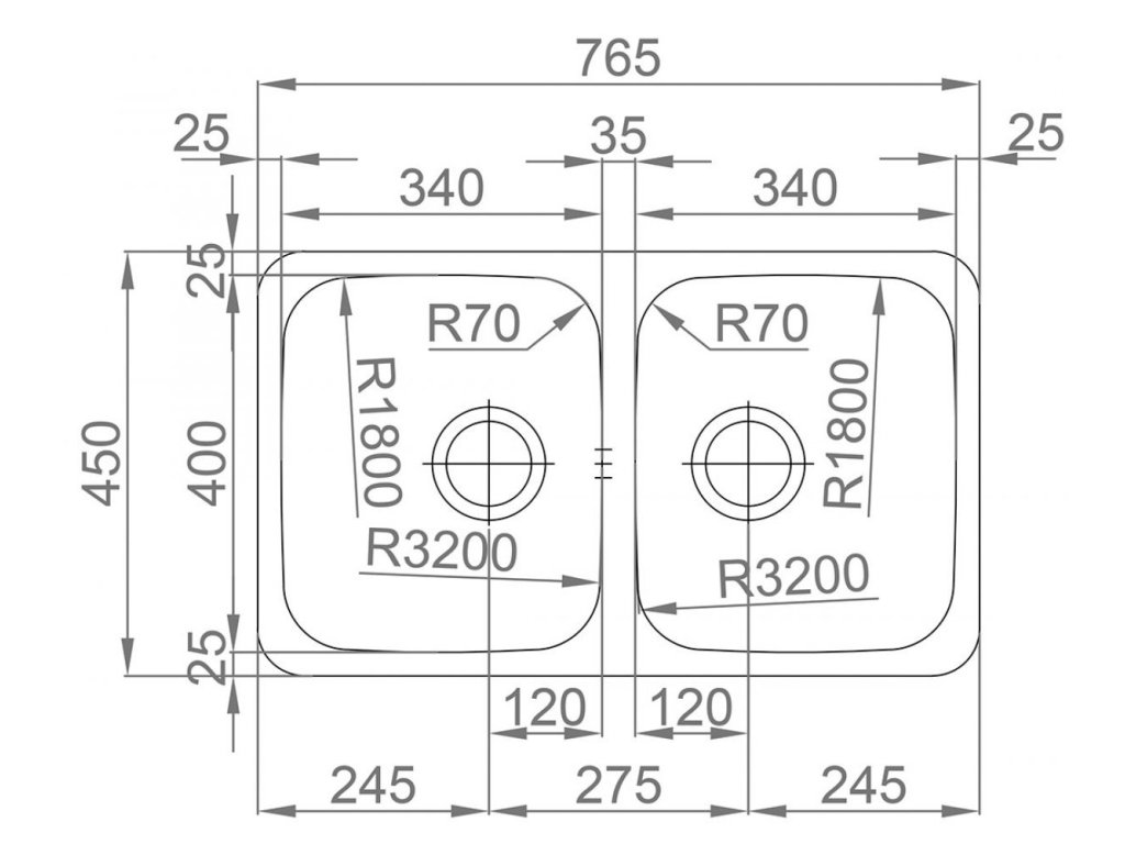 Vonkajšie rozmery drezu sú: 765 x 450 mm