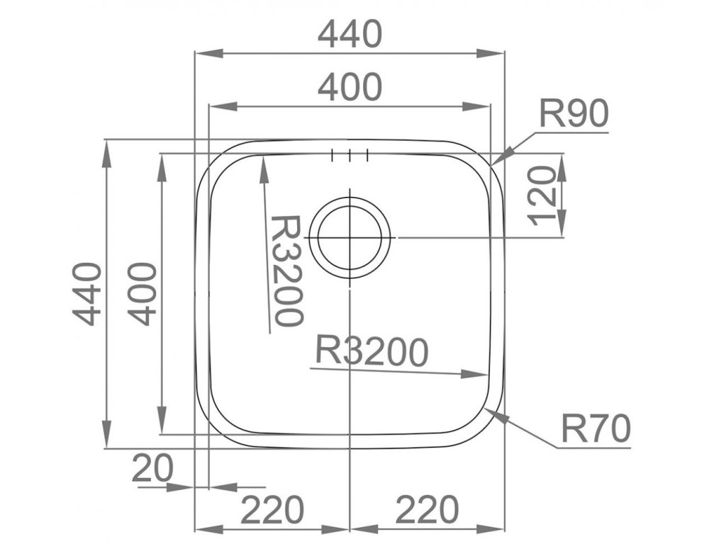 Vonkajšie rozmery drezu sú: 440 x 440 mm