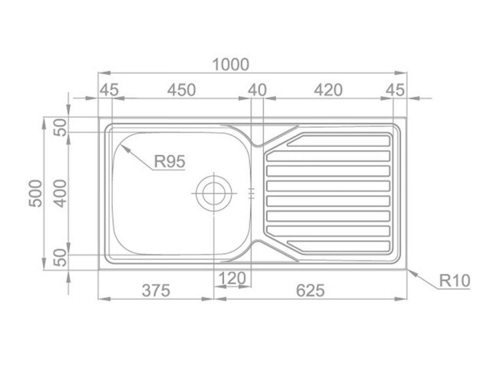 Vonkajšie rozmery drezu sú: 1000 x 500 mm