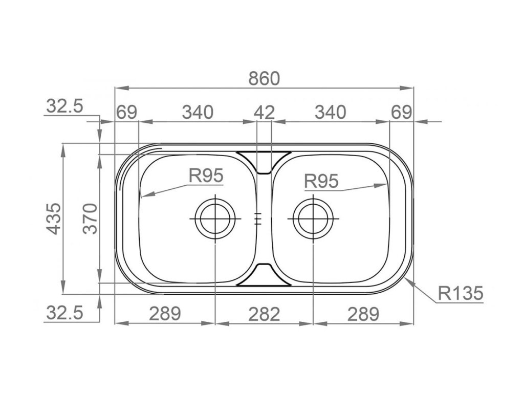 Vonkajšie rozmery drezu sú: 860 x 435 mm