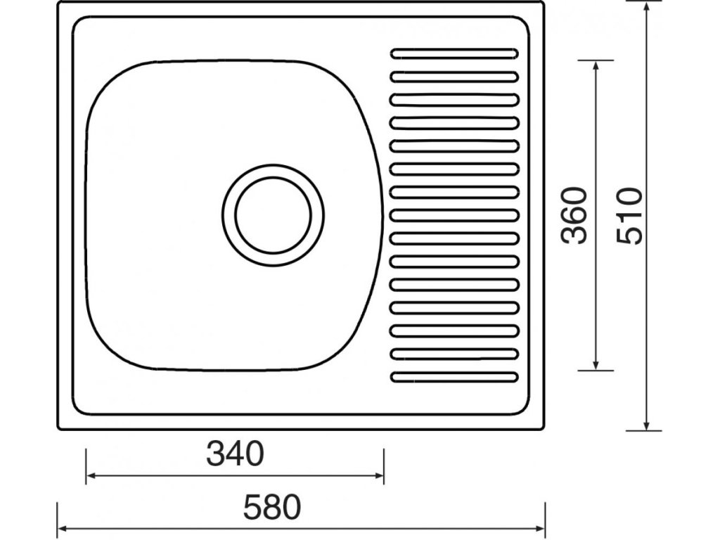 Vonkajšie rozmery drezu sú: 580 x 510 mm.