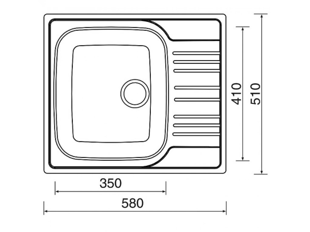 Vonkajšie rozmery drezu: 580 x 510 mm.