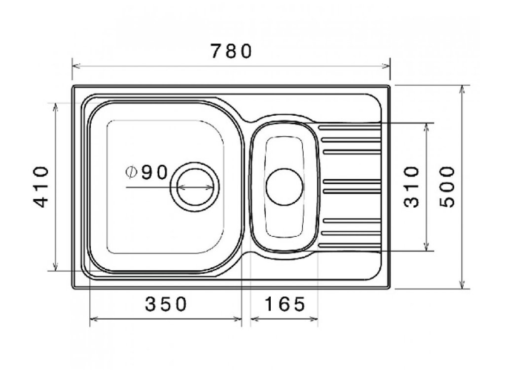 Vonkajšie rozmery drezu: 780 x 500 mm