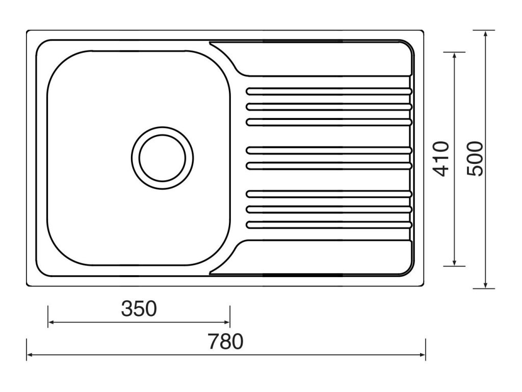 Vonkajšie rozmery drezu sú: 780 x 500 mm.