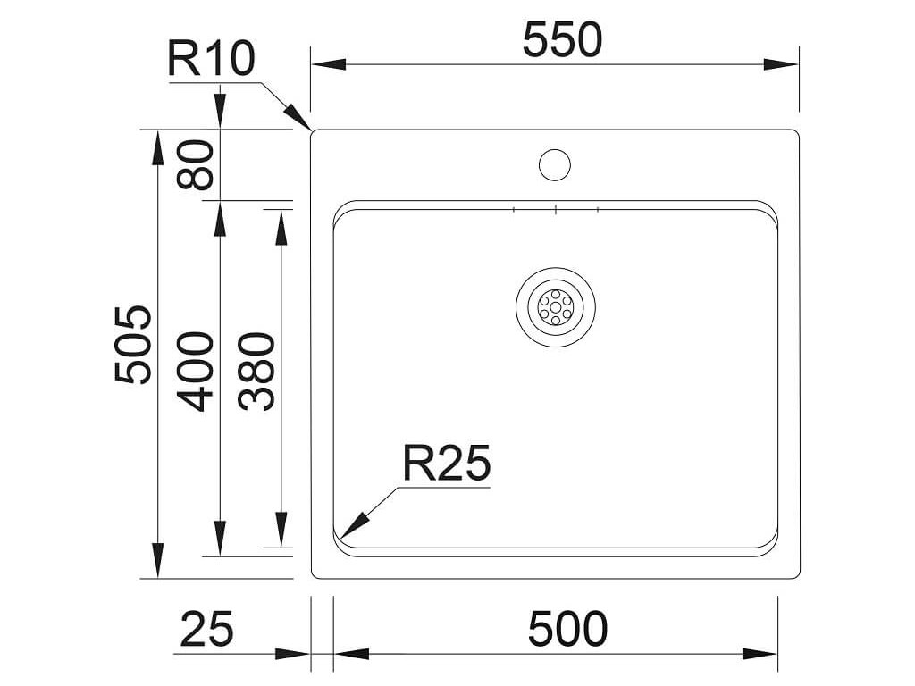 Vonkajšie rozmery drezu: 550 x 505 mm