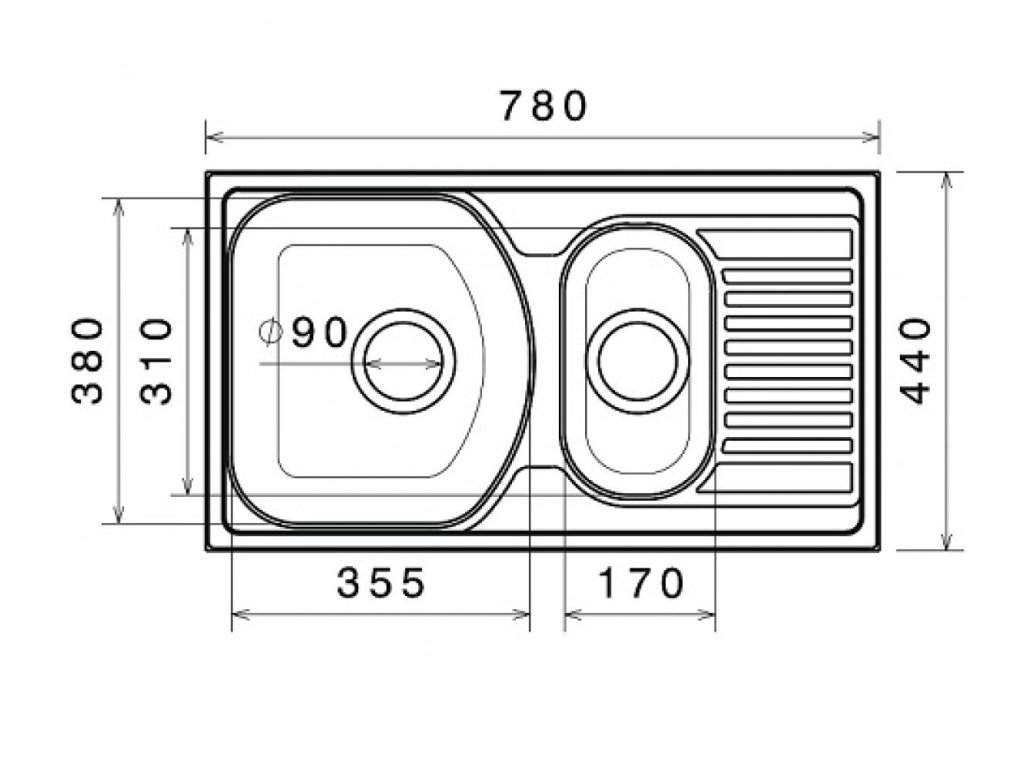 Vonkajšie rozmery drezu: 780 x 440 mm
