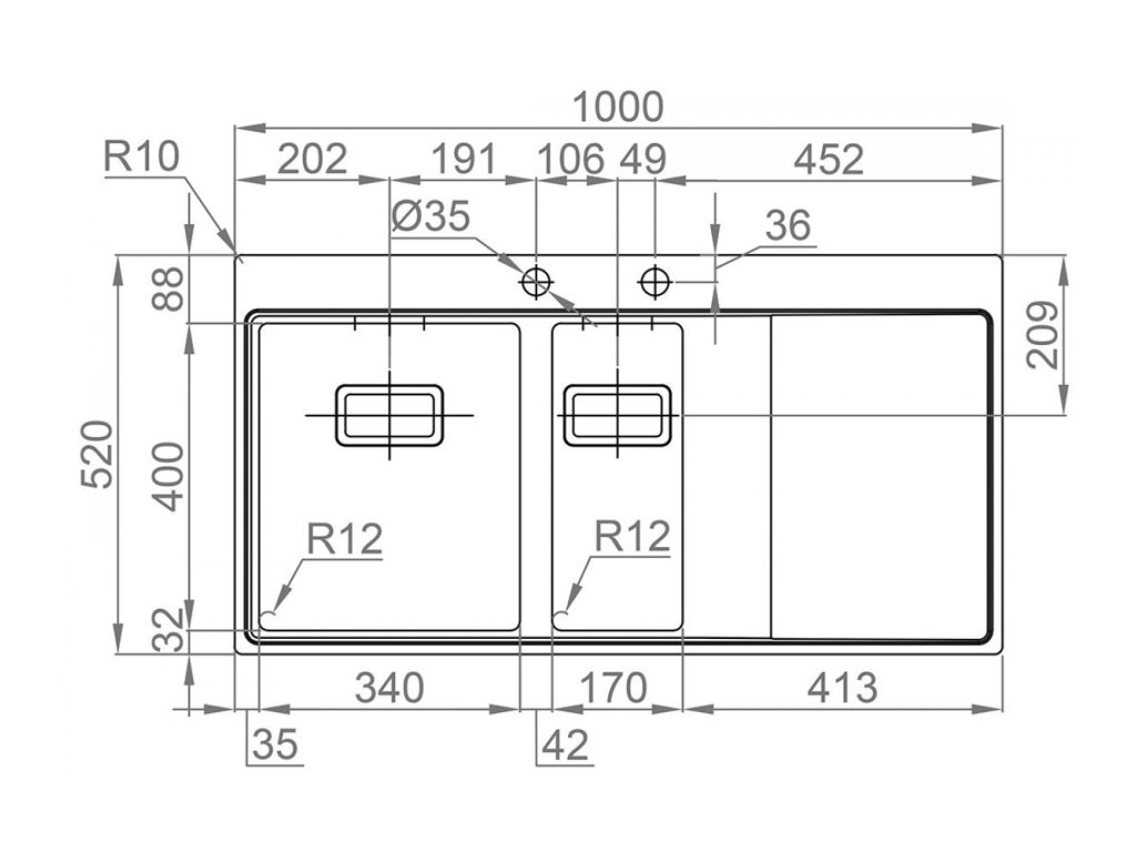 Vonkajšie rozmery drezu sú: 1000 x 520 mm