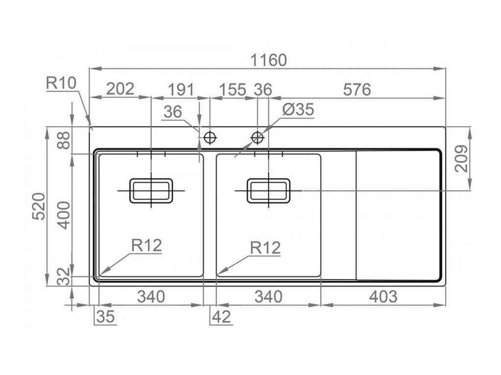 Vonkajšie rozmery drezu sú: 1160 x 520 mm