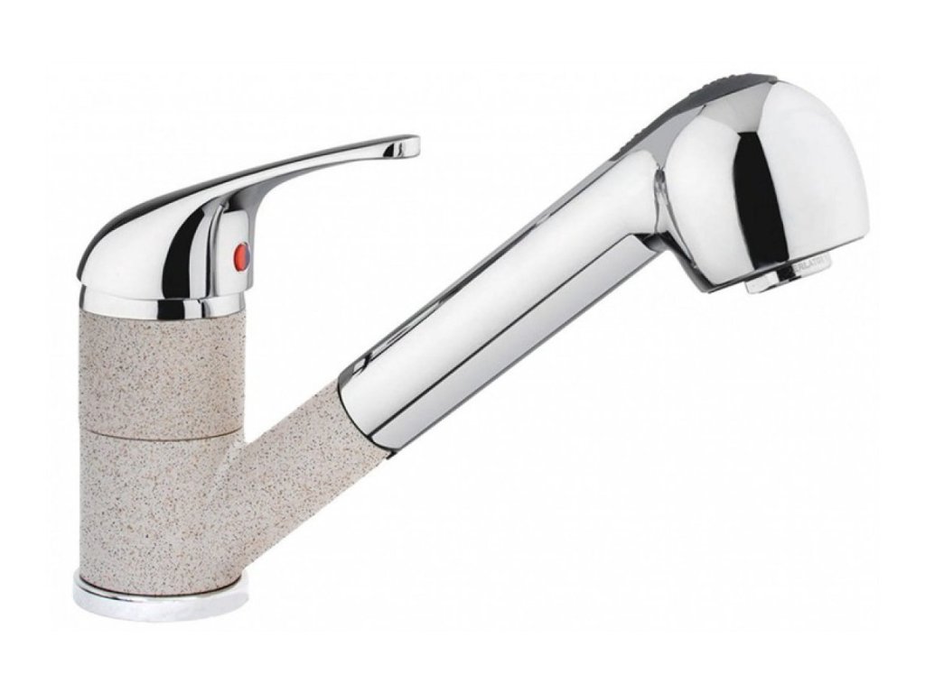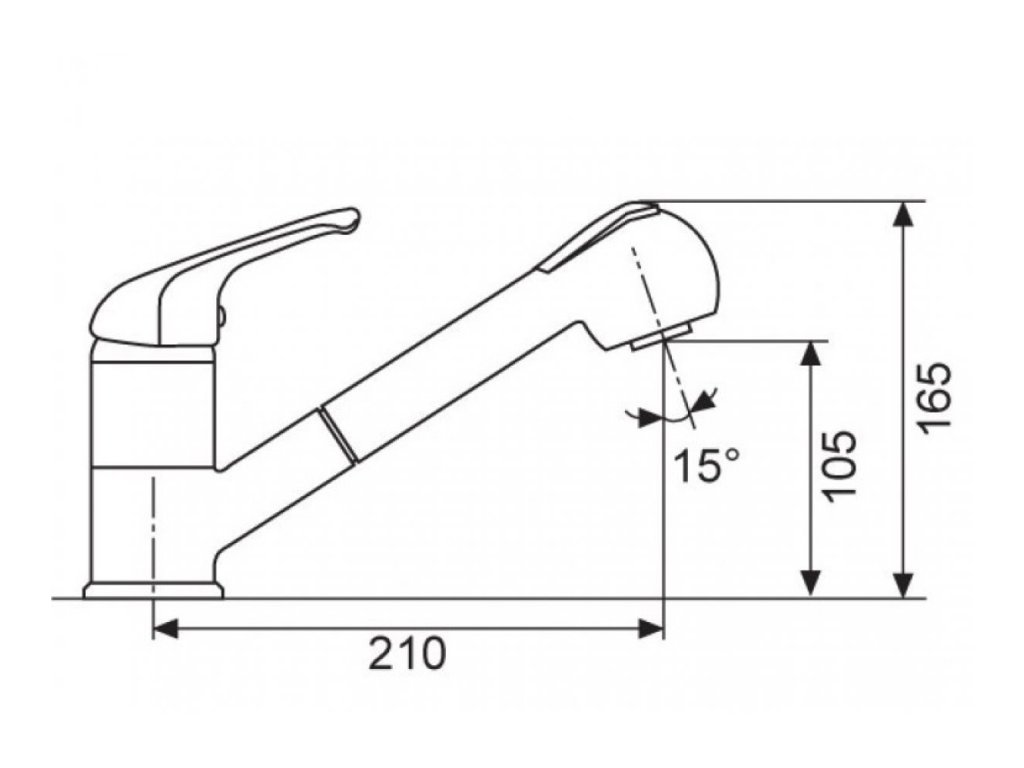 Páková drezová stojanková vodovodná batéria s výsuvnou sprškou s prepínaním sprcha/prúd. Výtokové rameno je otočné v rozsahu do 200°.
