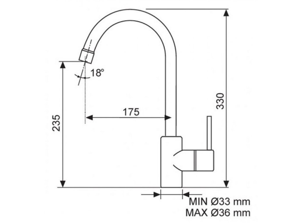 Páková drezová stojanková vodovodná batéria s otočným vyšším výtokovým ramenom. Rozsah otáčania: 360°.